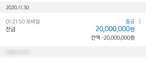 ② 11월 30일 새벽에 마이너스 통장에서 돈을 출금했다.