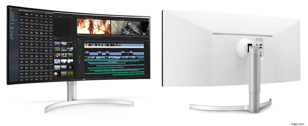 38WN95C는 21:9 화면비율의 울트라 와이드 모니터는 2300R 곡률로 된 커브드 모니터입니다. 구매 전에 커브드 모니터에 거부감이 있었는데 구매 전 매장에서 보니 거의 평면에 해당할 정도로 크게 어색하지 않았습니다. 실제 사용해 봐도. 평면처럼 느껴져서 잘 샀다 생각되네요. 또한 뒷 패널이 흰색이라 그 점도 예쁜 것 같아요. 오피스에서 모니터 뒷면이 노출되는 곳에 어울릴 것 같습니다.