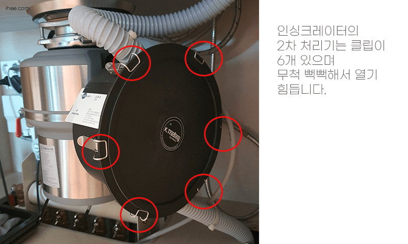 인싱크레이터 2차처리기의 뚜껑은 6개의 클립으로 단단하게 잠겨있는데. 이게 무척 뻑뻑해서 한 번에 열 수가 없었습니다. 남자인 저도 여는데 너무 힘들었고 안쪽은 힘도 안 받쳐서 손가락 끊어지는 줄 알았어요. 이거 열기 어려워서 남자들이 할 수밖에 없는 일인 것 같네요....